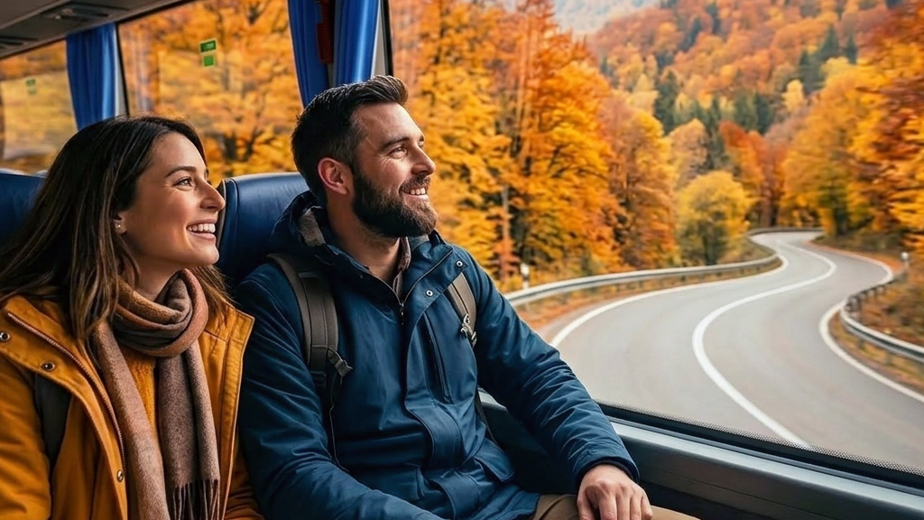 O outono traz clima agradável e cenários diferentes nas estradas, tornando as viagens de ônibus ainda mais confortáveis e convidativas.